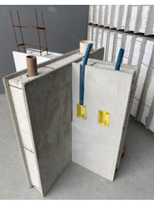 It is composed by two outer plates made with cement, plasticizer additive, sand and water welded onto steel wires meshed onto the Expanded Polystyrene (EPS) block inside.